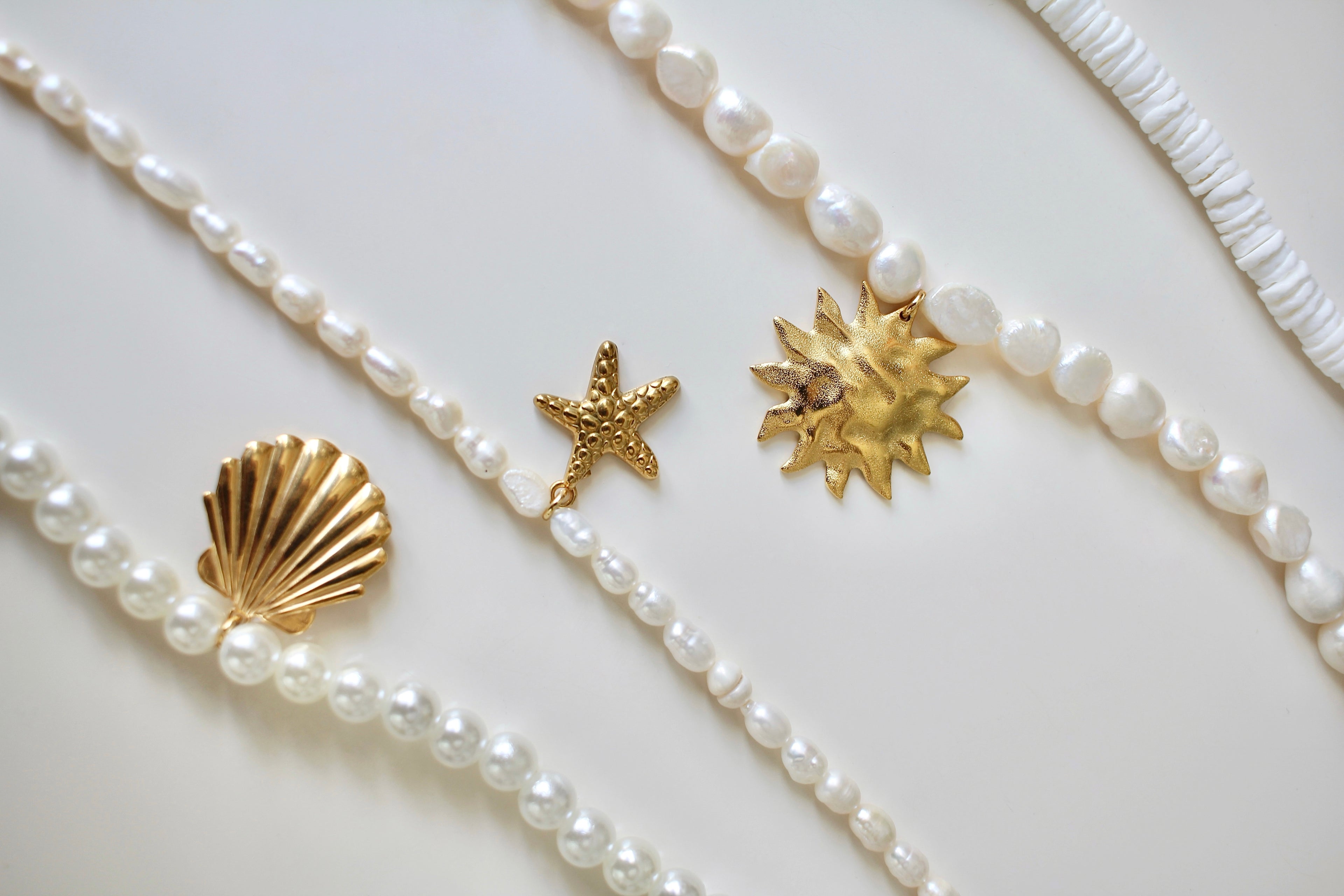 En perles naturelles d’eau douce, en coquillage naturel et pendentifs en acier inoxydable